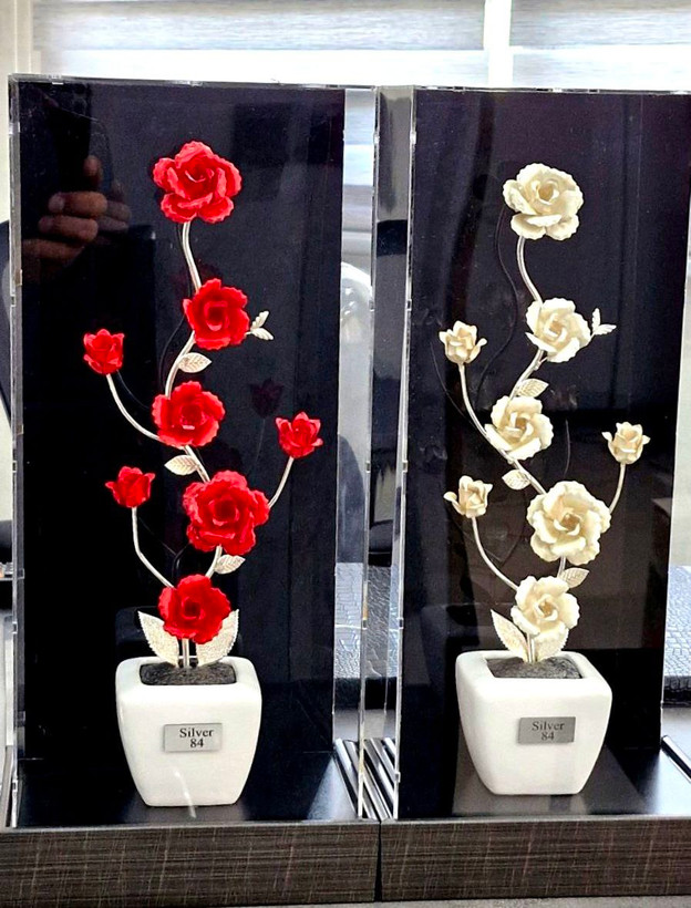 گل رز تمام نقره ۸۴ عیار با طراحی لوکس