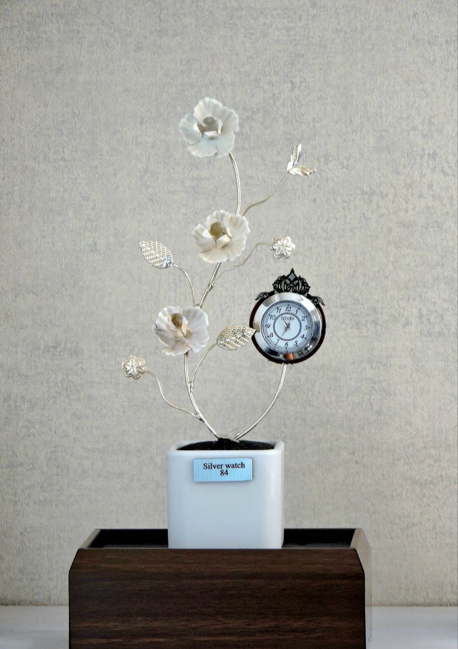 ساعت رز تمام نقره مینیاتوری ۸۴ عیار رومیزی یک هدیه لوکس و ماندگار است که ترکیبی از کیفیت نقره و طراحی شیک مینیاتوری را ارائه میدهد.