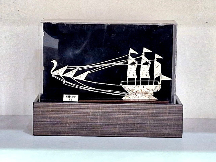 کشتی رومیزی تمام نقره ۸۴ عیار یک قطعه لوکس و چشمنواز است که ترکیبی از هنر نقره و طراحی کلاسیک دریایی را به نمایش میگذارد.