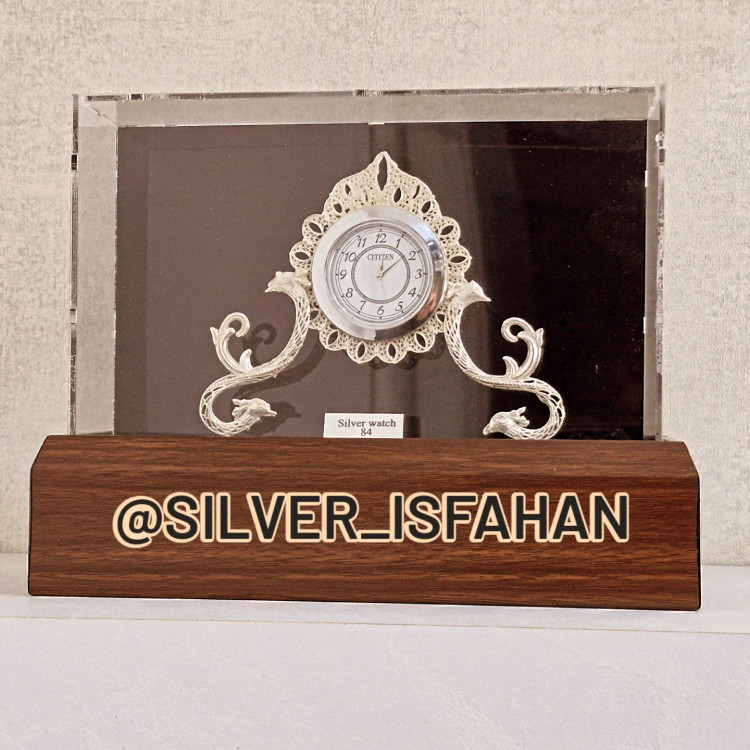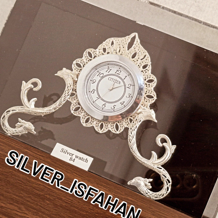 ساعت رومیزی تمام نقره، طرح سیمرغ ،عیار استاندارد ۸۴ همراه با باکس پلکسی وارداتی پایه فلزی و پایه pvc هر دو مدل پایه قابل سفارش
