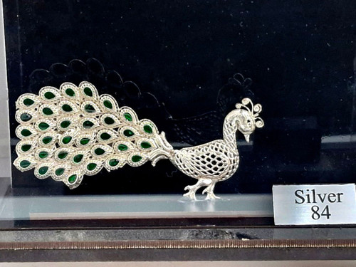 ناموجودطاووس رومیزی تمام نقره ۸۴ عیار با باکس پلکسی